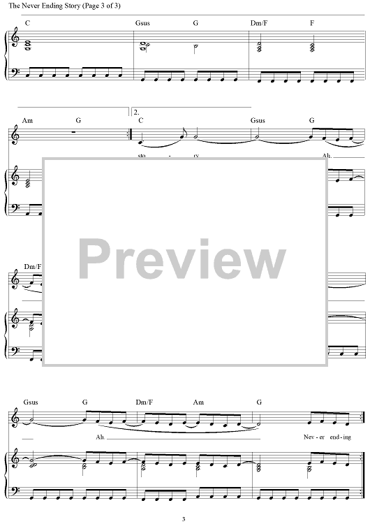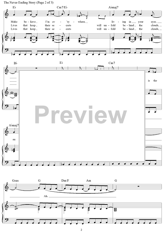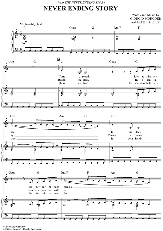 Digital Sheet Music for The Never Ending Story by Giorgio Moroder, Keith Forsey scored for Piano/Vocal/Chords; id:467726