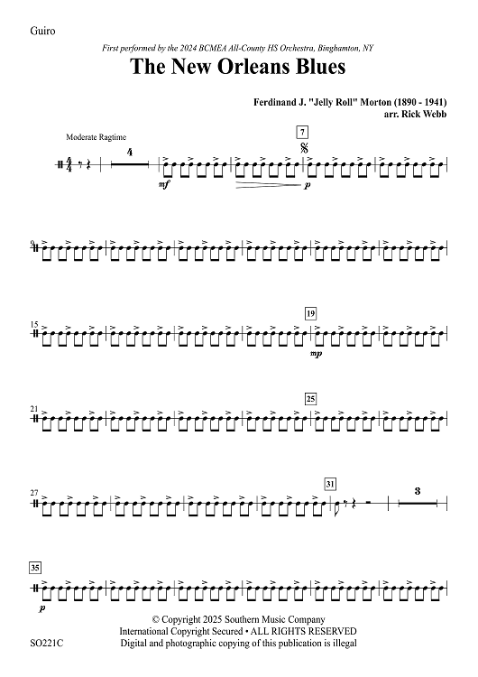 "The New Orleans Blues - Guiro" Sheet Music by Jelly Roll Morton
