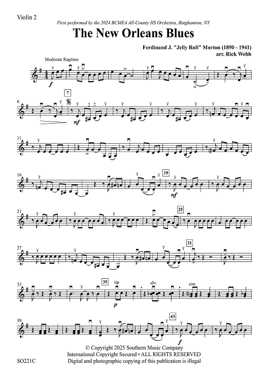 Digital Sheet Music for The New Orleans Blues - Violin 2 by Jelly Roll Morton, Richard Webb scored for String Orchestra; id:507290