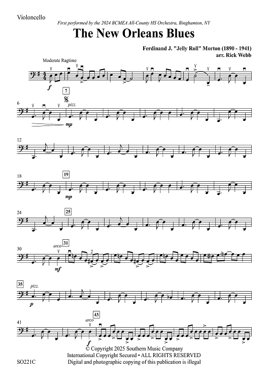 Digital Sheet Music for The New Orleans Blues - Violoncello by Jelly Roll Morton, Richard Webb scored for String Orchestra; id:507292