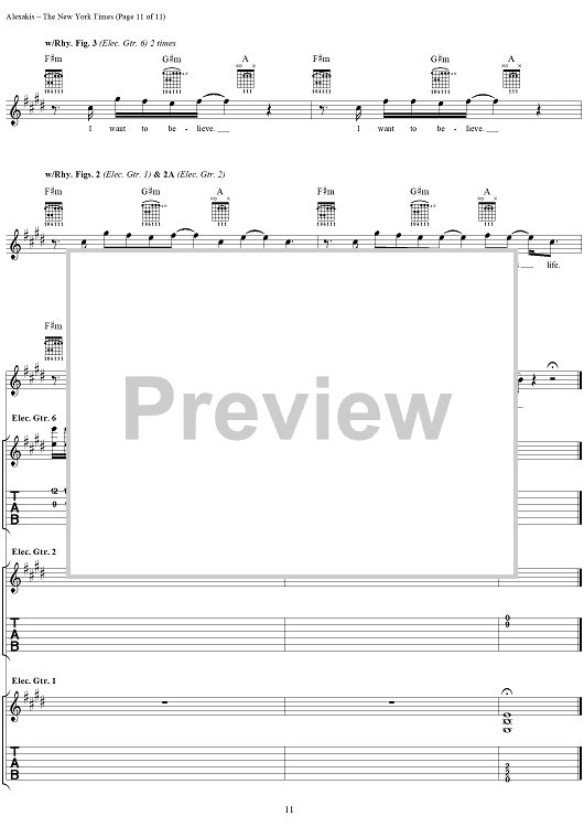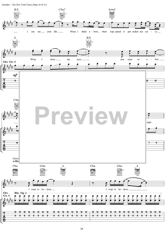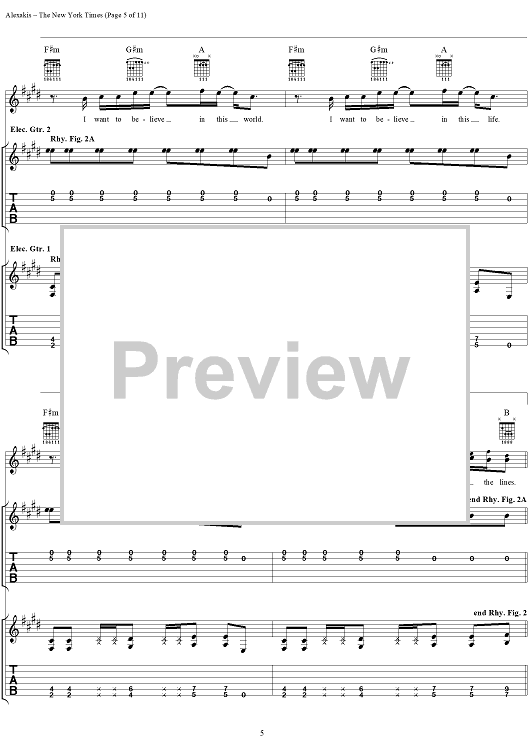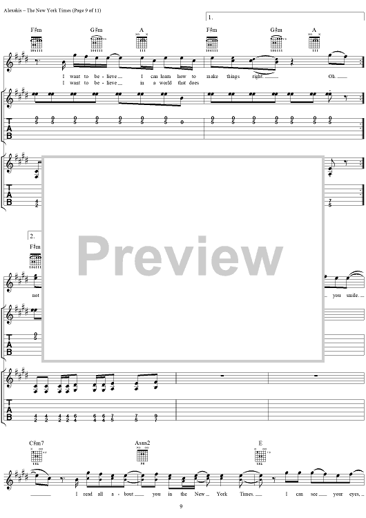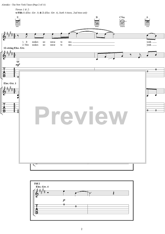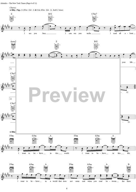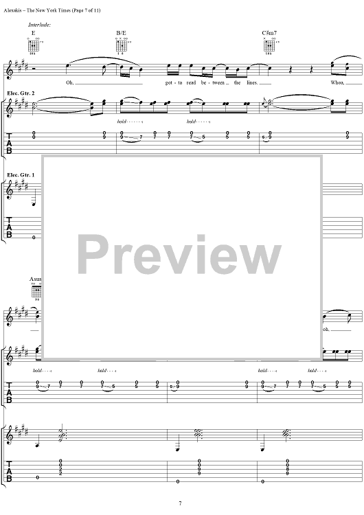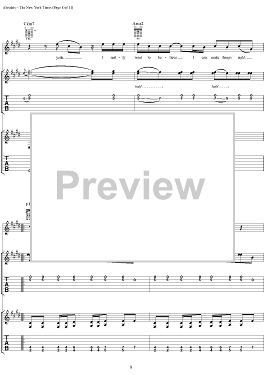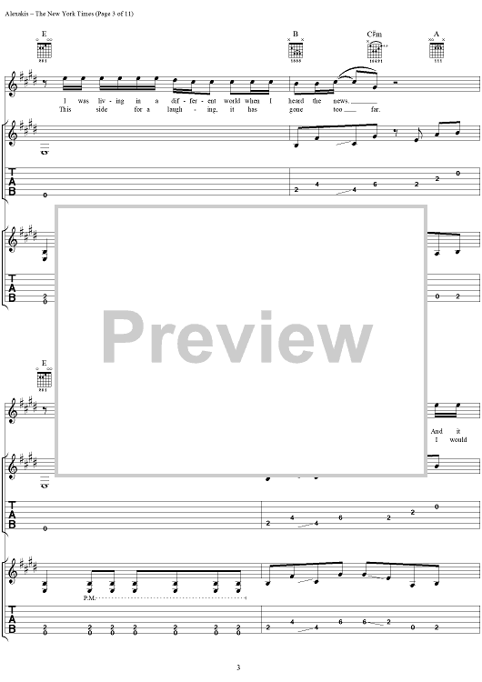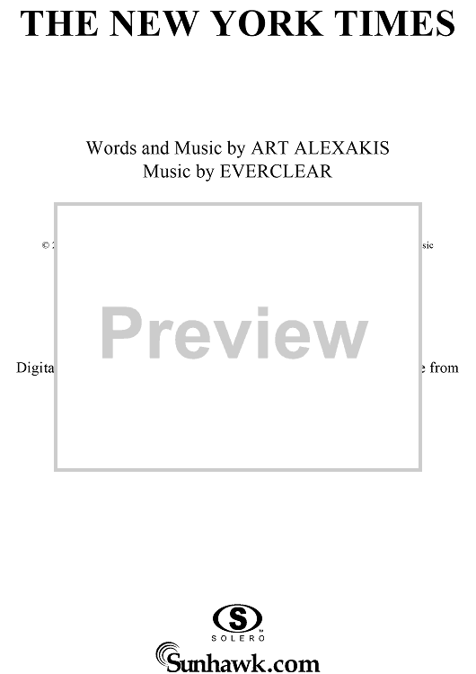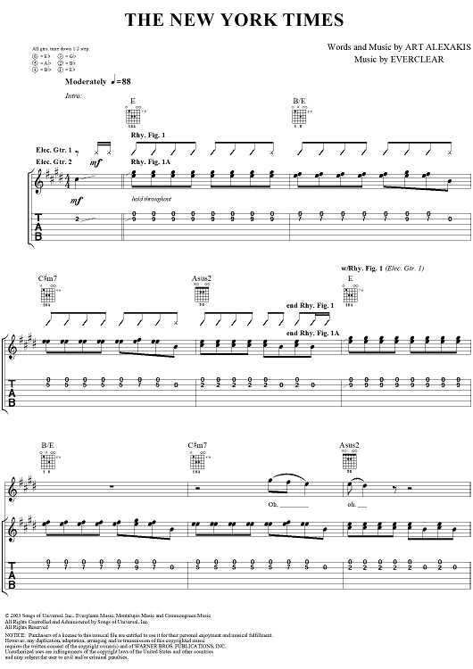 Digital Sheet Music for The New York Times by Everclear, Art Alexakis scored for Guitar Tab/Vocal; id:303019