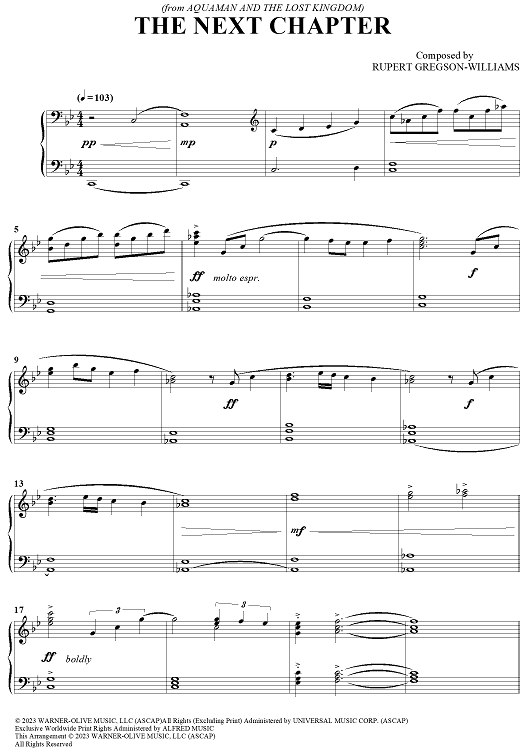 Digital Sheet Music for The Next Chapter - from Aquaman And The Lost Kingdom by Rupert Gregson-Williams scored for Piano Solo; id:501430