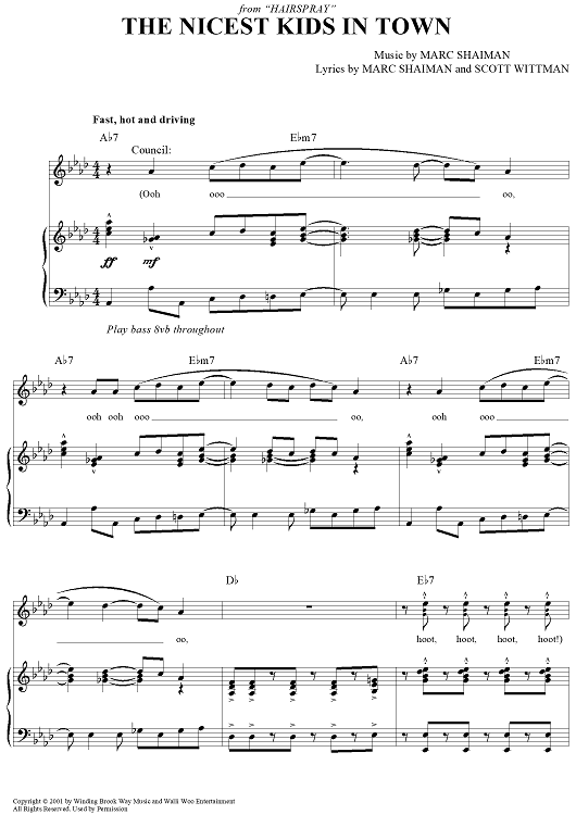 Digital Sheet Music for The Nicest Kids in Town by Marc Shaiman, Scott Wittman scored for Piano/Vocal/Chords; id:363078