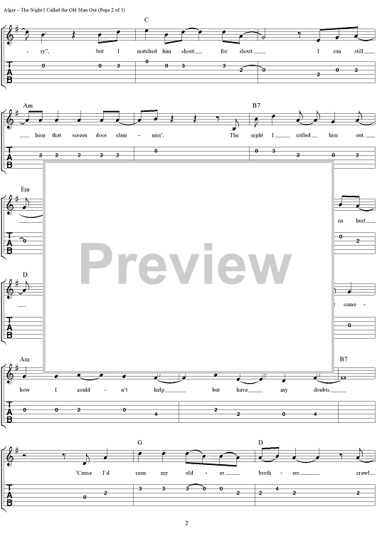 Digital Sheet Music for The Night I Called the Old Man Out by Garth Brooks, Pat Alger, Kim Williams scored for Easy Guitar Tab/Vocal; id:118893