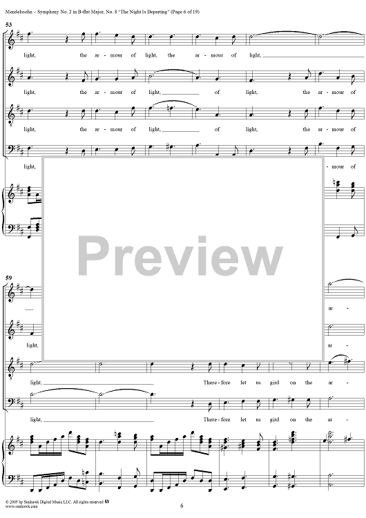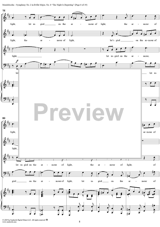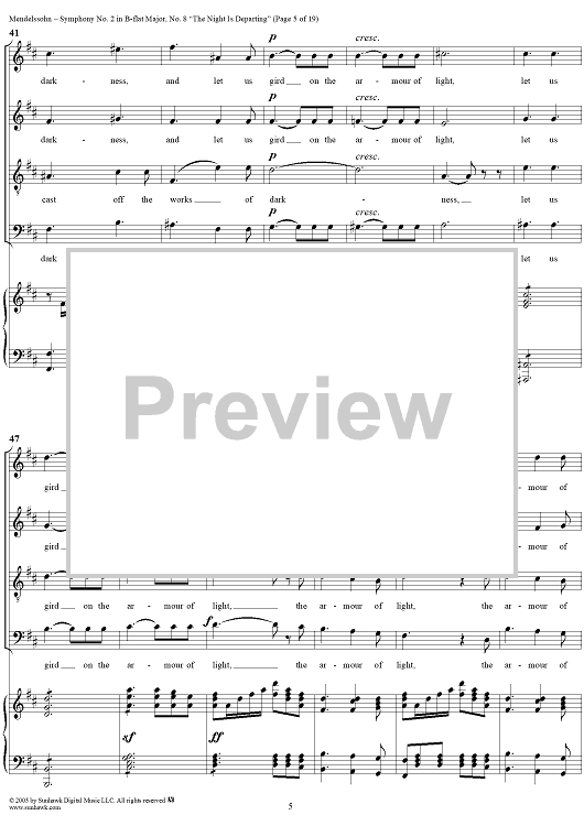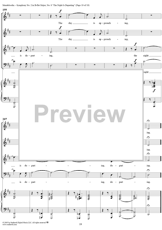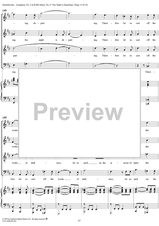 "The night is departing (Chorus), No. 8 from Symphony No. 2 in B-flat Major "Hymn of Praise", Op. 52" Sheet Music by Felix Mendelssohn
