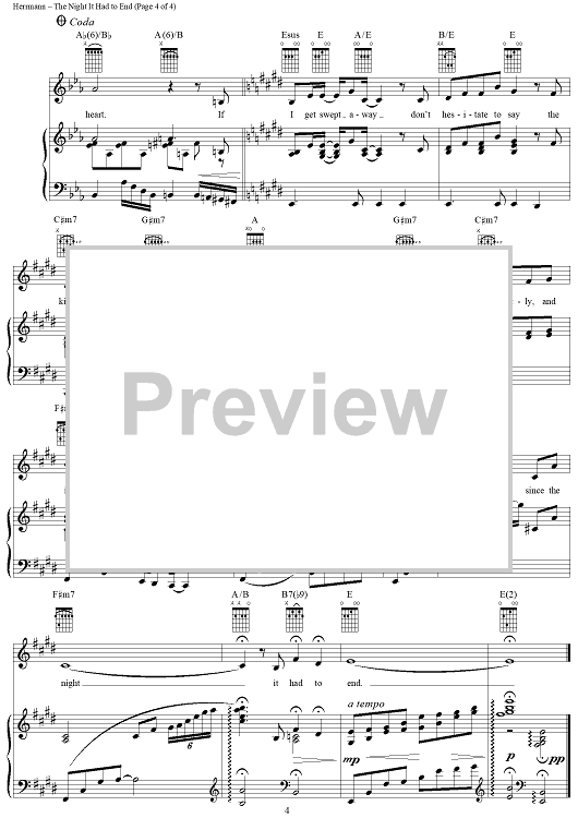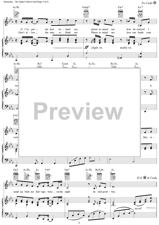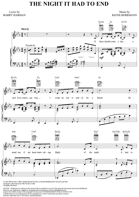 Digital Sheet Music for The Night It Had To End by Keith Herrmann, Barry Harman scored for Piano/Vocal/Chords; id:313612