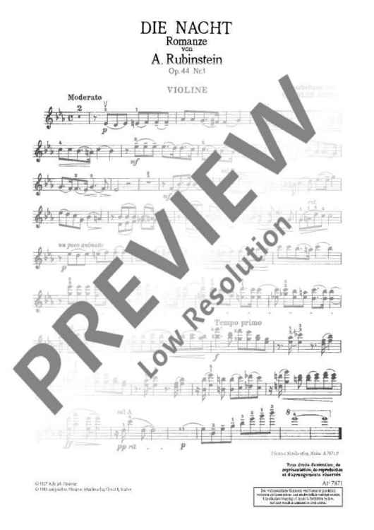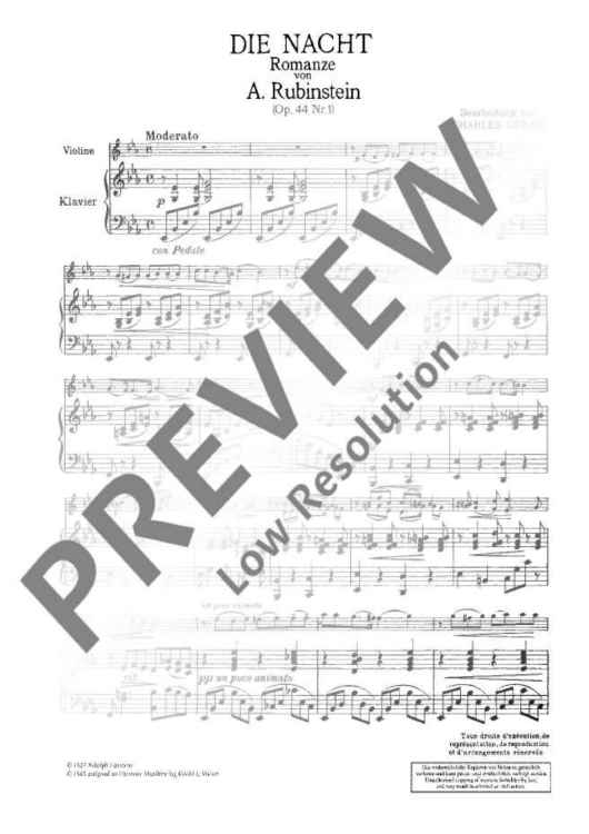 Digital Sheet Music for The Night by Grigorjewitsch Rubinstejn scored for Violin And Piano; id:470973