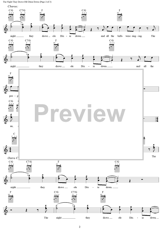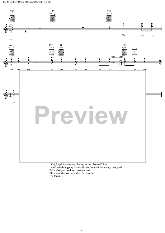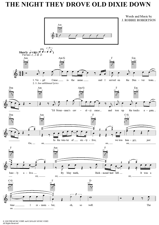Digital Sheet Music for The Night They Drove Old Dixie Down by Jerry Garcia, J. Robbie Robertson scored for Easy Guitar/Vocal; id:291653