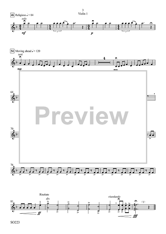 Digital Sheet Music for The Nighthawk of Golden Bell - Violin 1 by J. Cameron Law scored for String Orchestra; id:507878