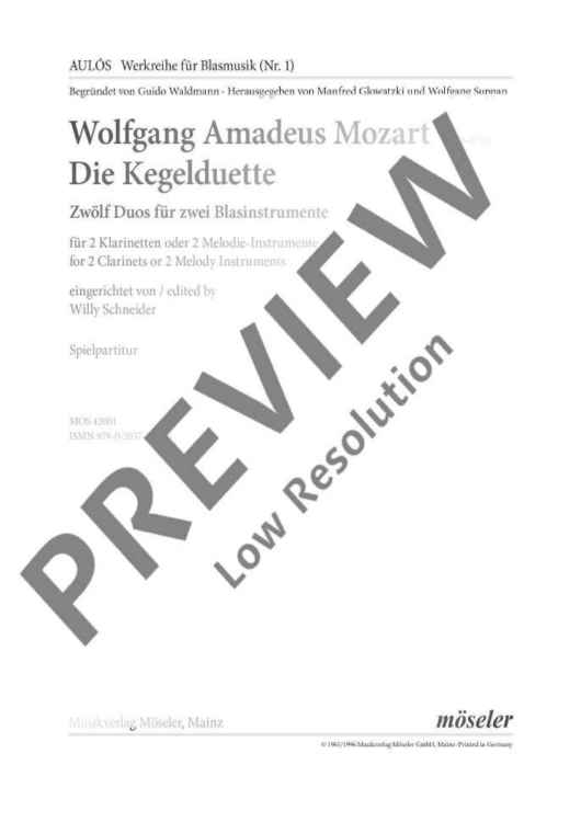 "The ninepins duets - Performing Score" Sheet Music by Wolfgang Amadeus Mozart