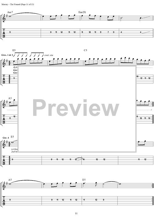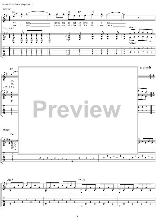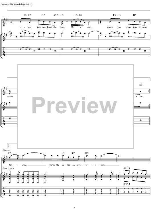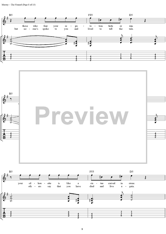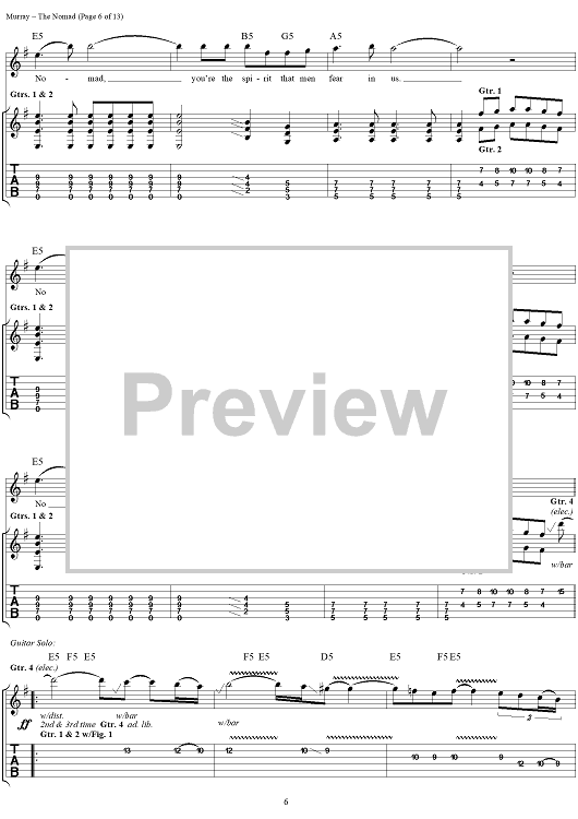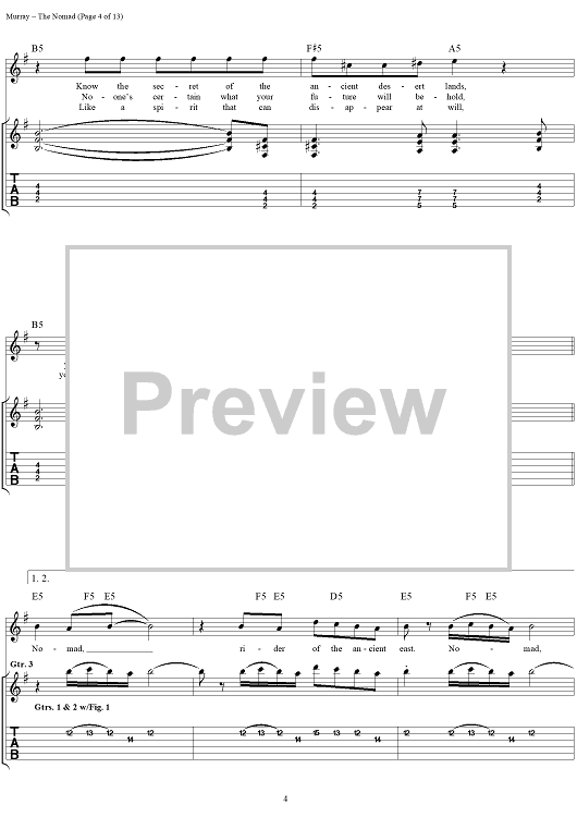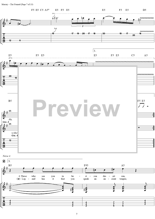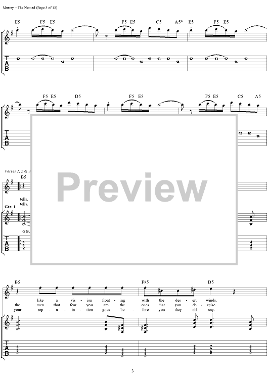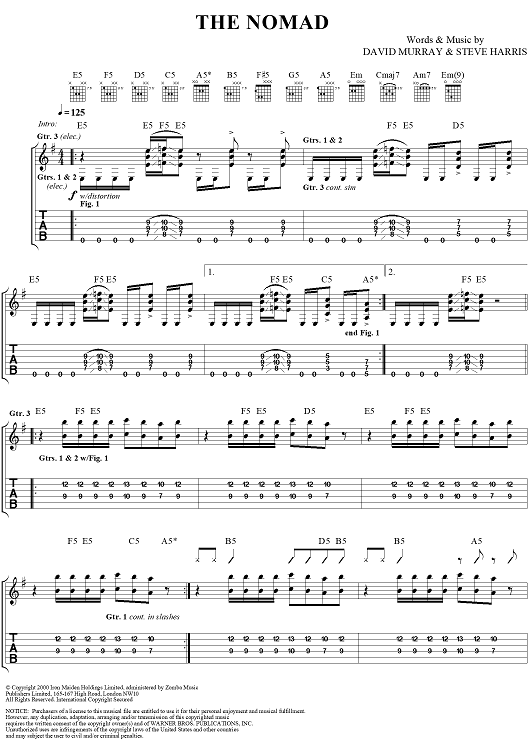 Digital Sheet Music for The Nomad by Steve Harris, Iron Maiden, Dave Murray scored for Guitar Tab/Vocal; id:284110
