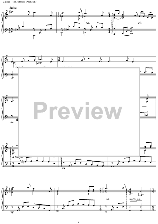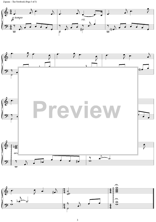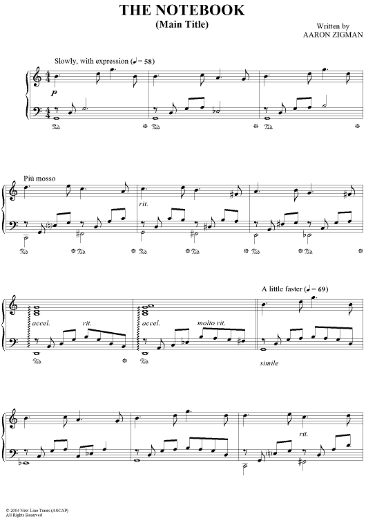 Digital Sheet Music for The Notebook (Main Title) by Aaron Zigman scored for Piano Solo; id:306846