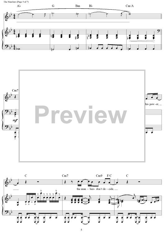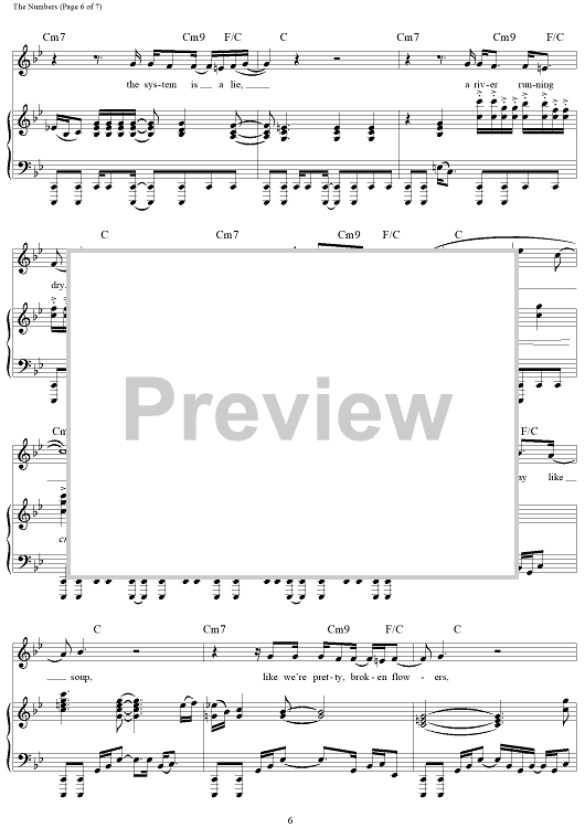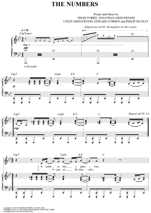 Digital Sheet Music for The Numbers by Thomas Yorke, Jonathan Greenwood, Philip Selway, Coz, Edward O'Brien, Radiohead scored for Piano/Vocal/Chords; id:464299