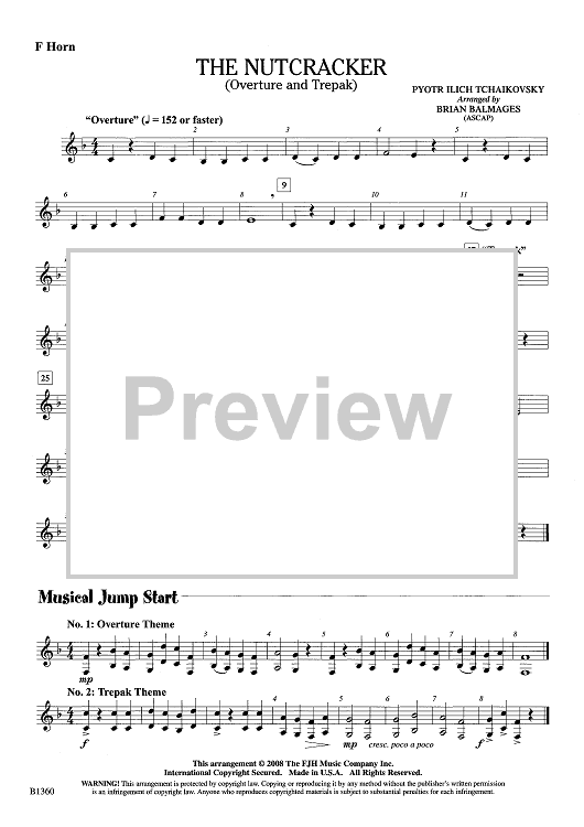 Digital Sheet Music for The Nutcracker (Overture and Trepak) - F Horn by Peter Ilyich Tchaikovsky, Brian Balmages scored for Concert Band; id:443315