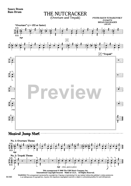 Digital Sheet Music for The Nutcracker (Overture and Trepak) - Snare Drum & Bass Drum by Peter Ilyich Tchaikovsky, Brian Balmages scored for Concert Band; id:443321