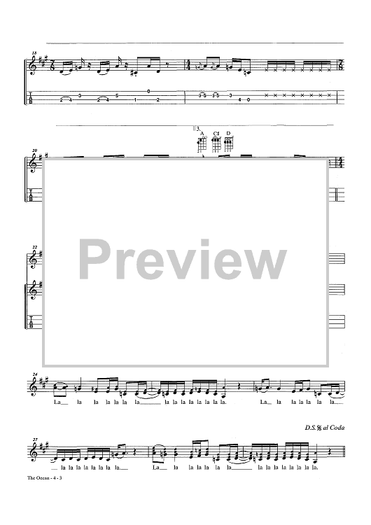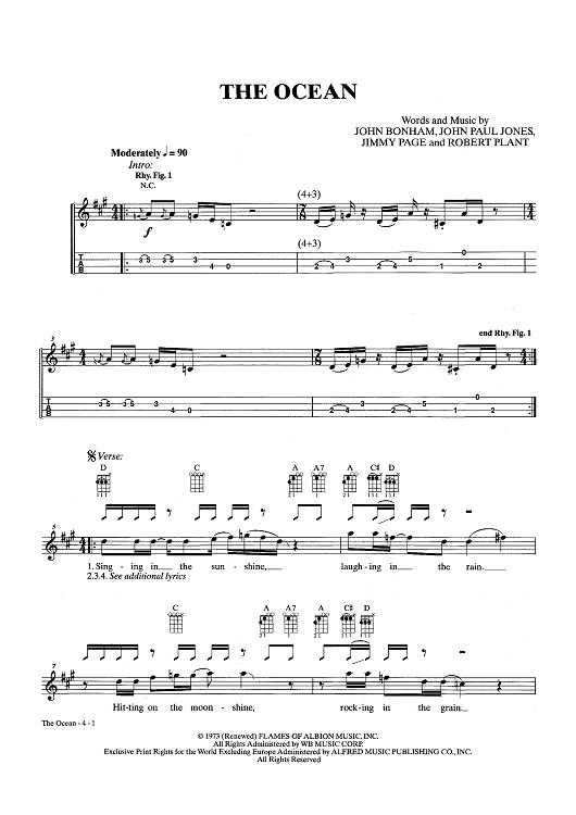Digital Sheet Music for The Ocean by Jimmy Page, John Paul Jones, John Bonham, Led Zeppelin, Robert Plant scored for Ukulele/Tab/Vocal; id:444190