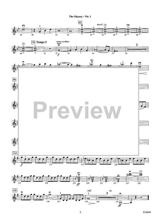 Digital Sheet Music for The Odyssey (Journey of Odysseus) - Violin 1 by Soon Hee Newbold scored for String Orchestra; id:441601