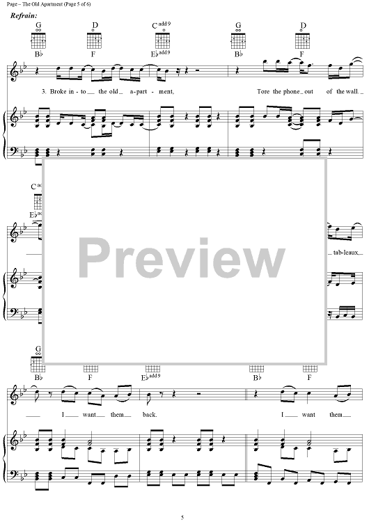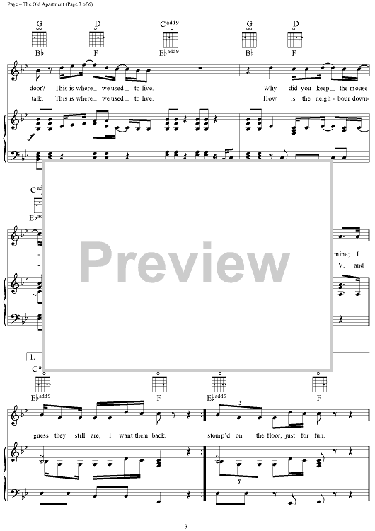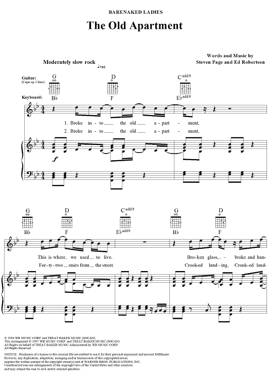 Digital Sheet Music for The Old Apartment by Steven Page, Ed Robertson, Barenaked Ladies scored for Piano/Vocal/Chords; id:110254
