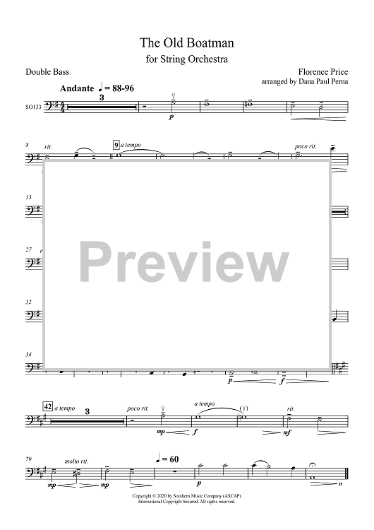 Digital Sheet Music for The Old Boatman - Double Bass by Florence Price, Dana Perna scored for String Orchestra; id:503234