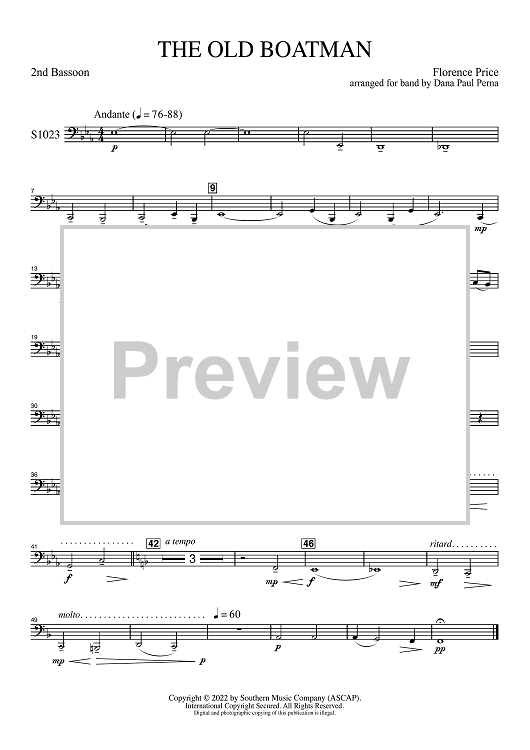 Digital Sheet Music for The Old Boatman for Band - Bassoon 2 by Florence Price, Dana Perna scored for Concert Band; id:503360