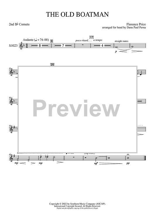 Digital Sheet Music for The Old Boatman for Band - Bb Cornet 2 by Florence Price, Dana Perna scored for Concert Band; id:503366