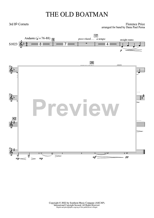 Digital Sheet Music for The Old Boatman for Band - Bb Cornet 3 by Florence Price, Dana Perna scored for Concert Band; id:503367