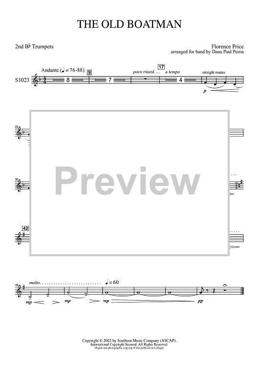 "The Old Boatman for Band - Bb Trumpet 2" Sheet Music by Florence Price