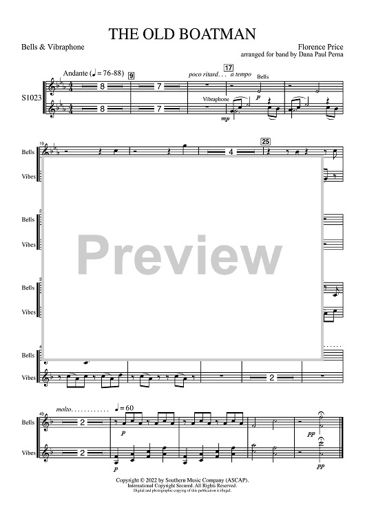 "The Old Boatman for Band - Bells & Vibes" Sheet Music by Florence Price