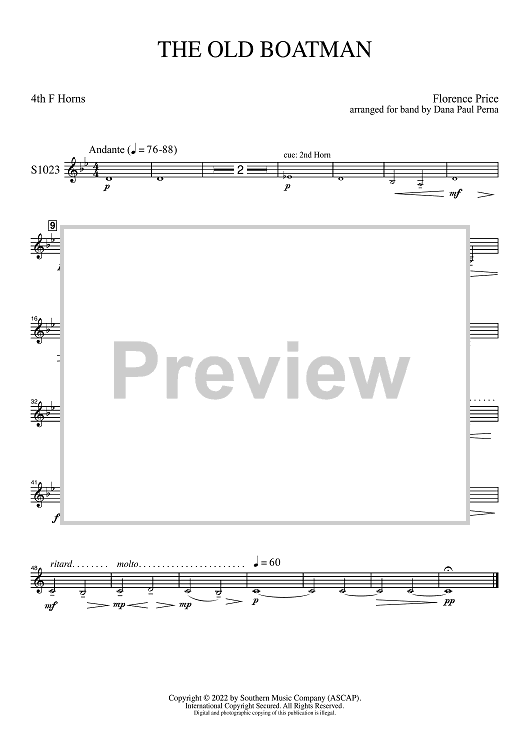 Digital Sheet Music for The Old Boatman for Band - F Horn 4 by Florence Price, Dana Perna scored for Concert Band; id:503373