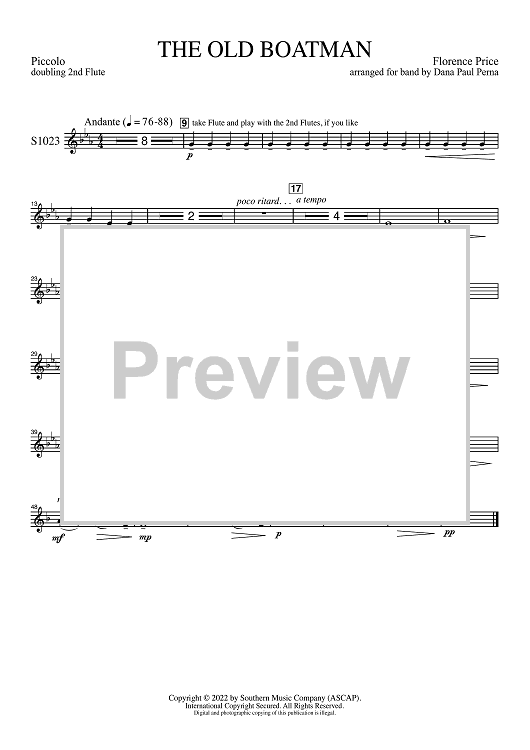 Digital Sheet Music for The Old Boatman for Band - Piccolo doubling 2nd Flute by Florence Price, Dana Perna scored for Concert Band; id:503348