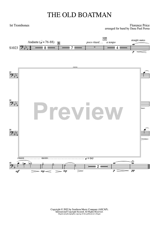 "The Old Boatman for Band - Trombone 1" Sheet Music by Florence Price