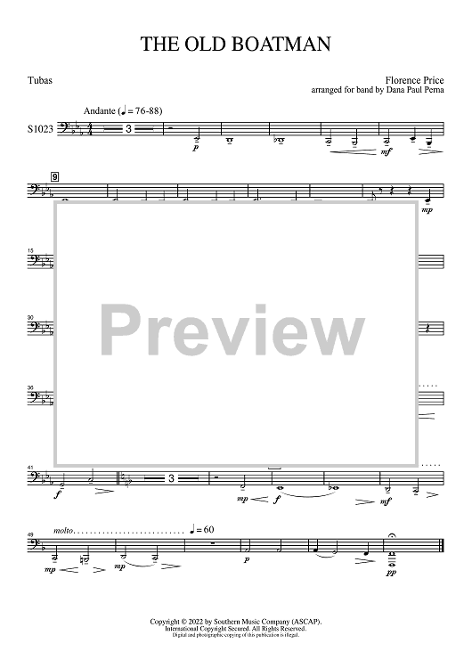 "The Old Boatman for Band - Tuba" Sheet Music by Florence Price