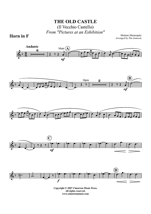 "The Old Castle from "Pictures at an Exhibition" - Horn in F" Sheet Music by Modest Musorgsky