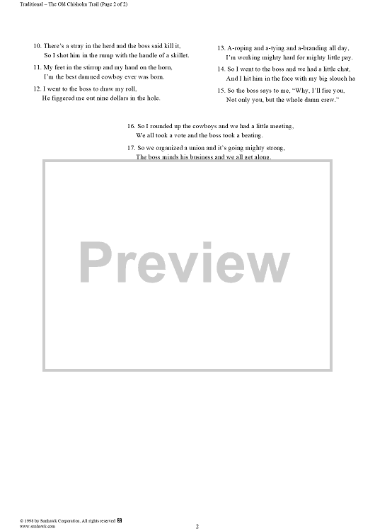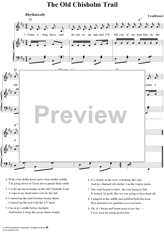 Digital Sheet Music for The Old Chisholm Trail by Traditional scored for Piano/Vocal/Chords; id:116291