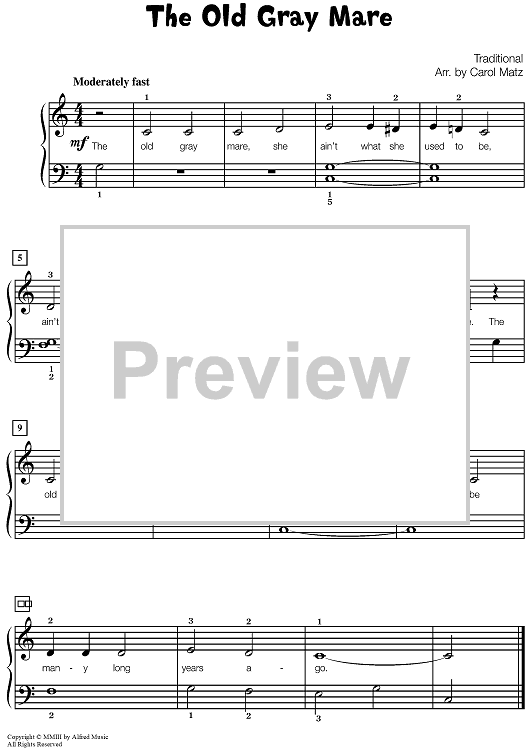 Digital Sheet Music for The Old Gray Mare by Carol Matz, Traditional scored for Piano; id:497448
