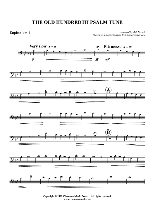 "The Old Hundredth Psalm Tune - Euphonium 1" Sheet Music by Traditional