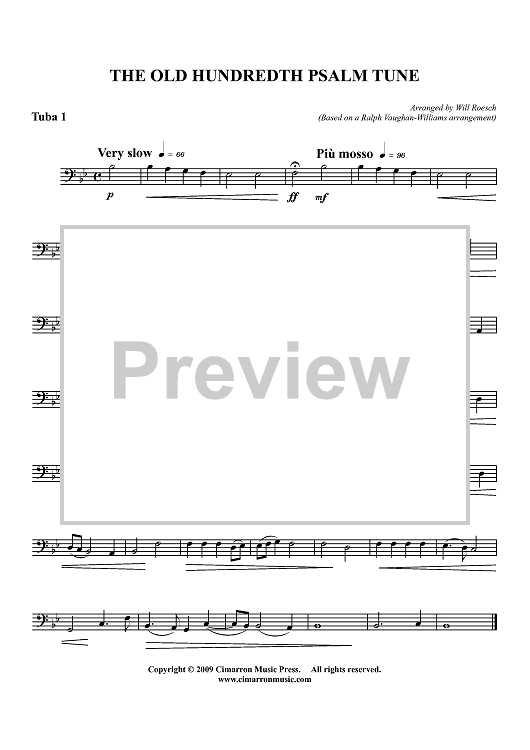 "The Old Hundredth Psalm Tune - Tuba 1" Sheet Music by Traditional