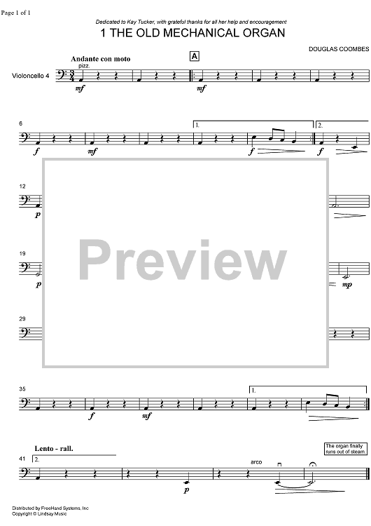 Digital Sheet Music for The Old Mechanical Organ - Cello by , Douglas Coombes scored for 4 Cellos; id:322591