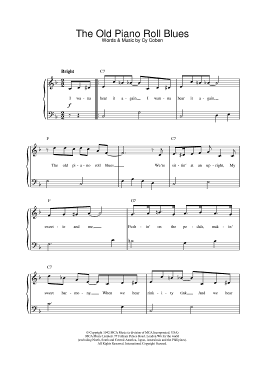 Digital Sheet Music for The Old Piano Roll Blues by Cy Coben scored for Piano; id:380740