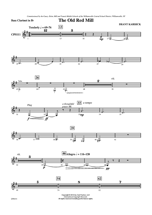 "The Old Red Mill - Bass Clarinet in B-flat" Sheet Music by Brant Karrick