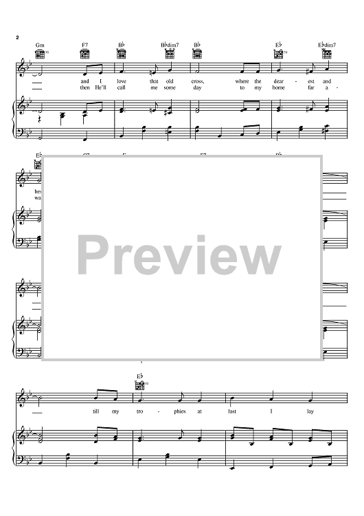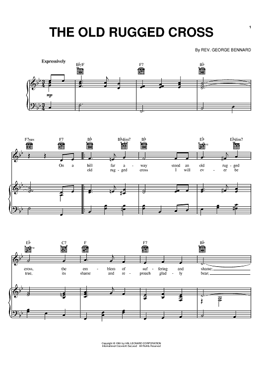 Digital Sheet Music for The Old Rugged Cross by Johnny Cash, Chet Atkins, George Jones, Pat Boone, George Bennard, Loretta Lynn, Tennessee Ernie Ford scored for Piano/Vocal/Chords; id:379472