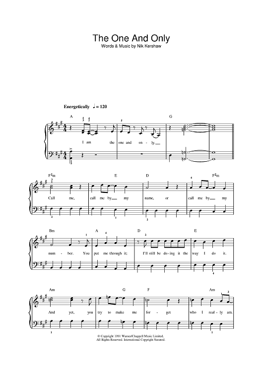 Digital Sheet Music for The One And Only by Nik Kershaw, Chesney Hawkes scored for Piano/Vocal/Chords; id:394252