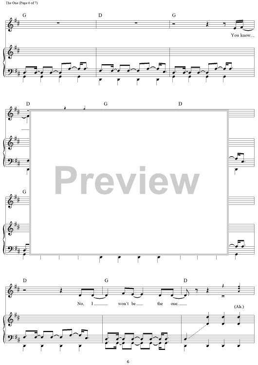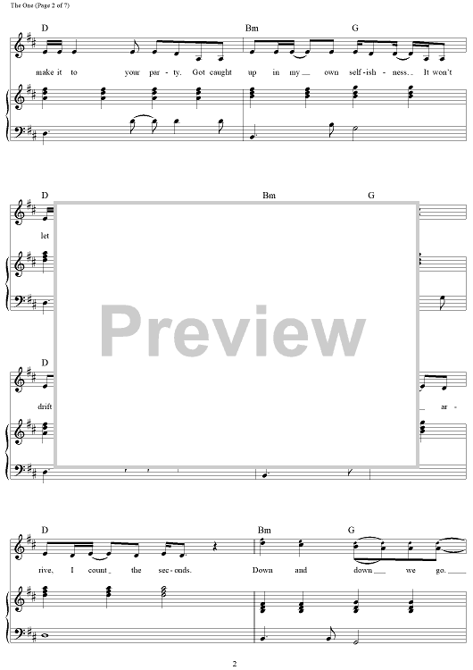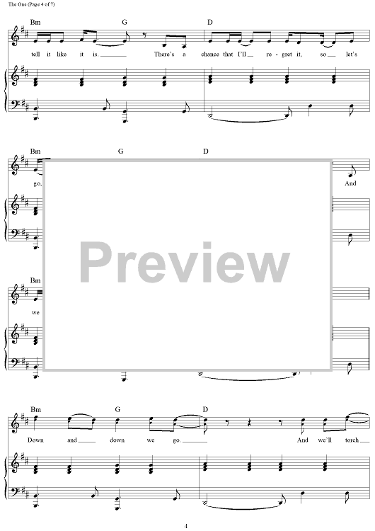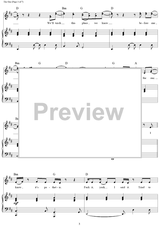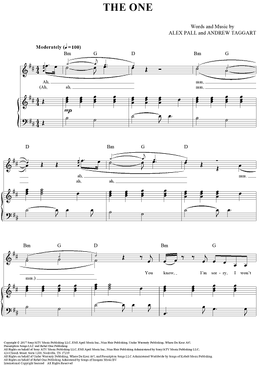 Digital Sheet Music for The One by Andrew Taggart, The Chainsmokers, Alex Pall scored for Piano/Vocal/Chords; id:464238