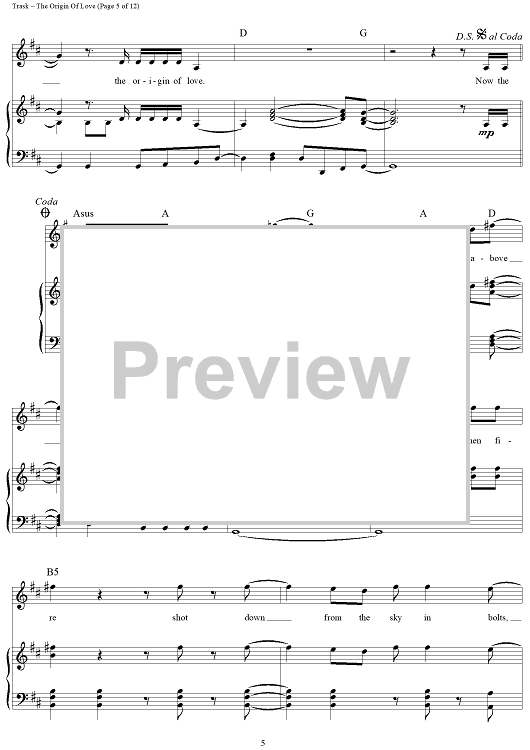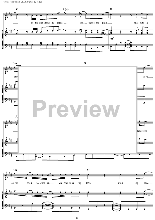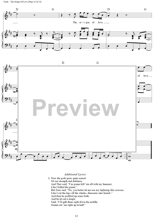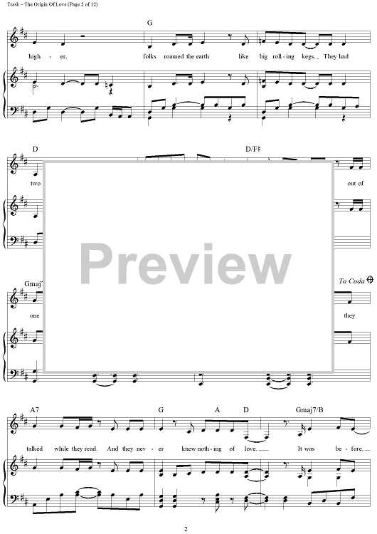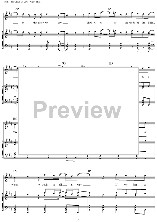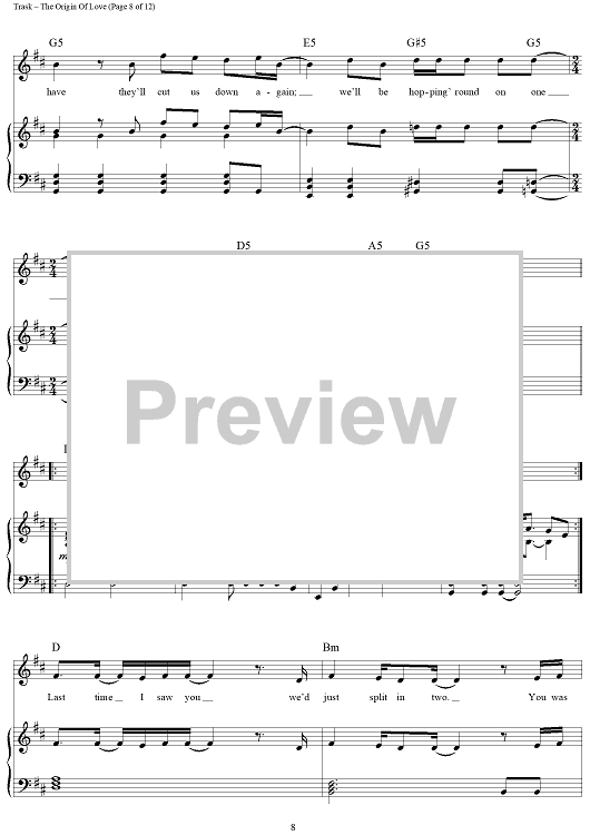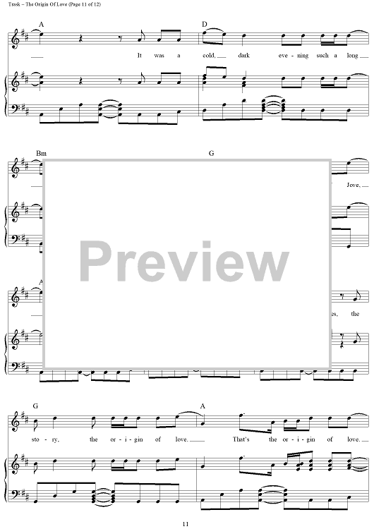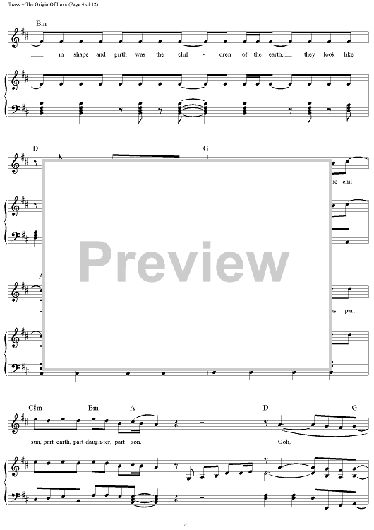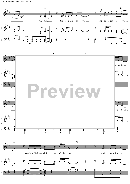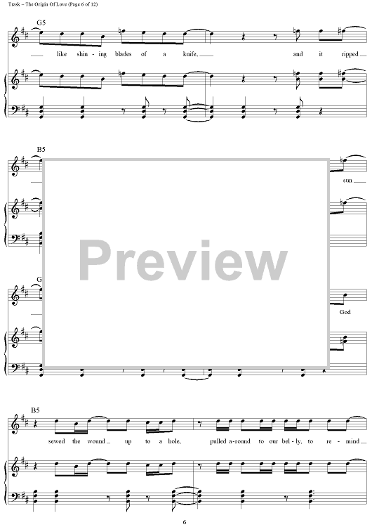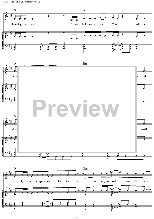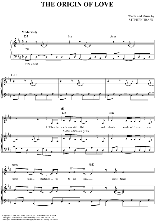 Digital Sheet Music for The Origin Of Love by Stephen Trask scored for Piano/Vocal/Chords; id:444517