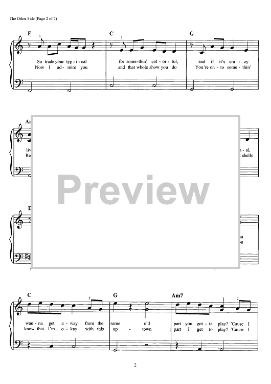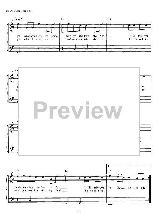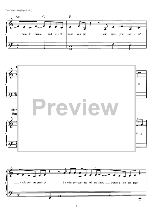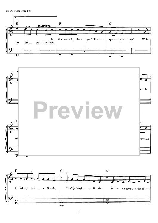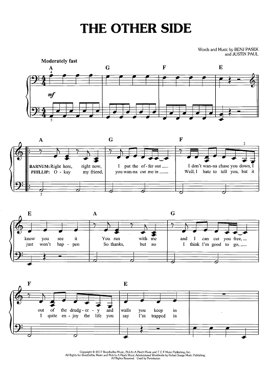 Digital Sheet Music for The Other Side - from The Greatest Showman by Benj Pasek, Justin Paul scored for Easy Piano/Vocal/Chords; id:466247