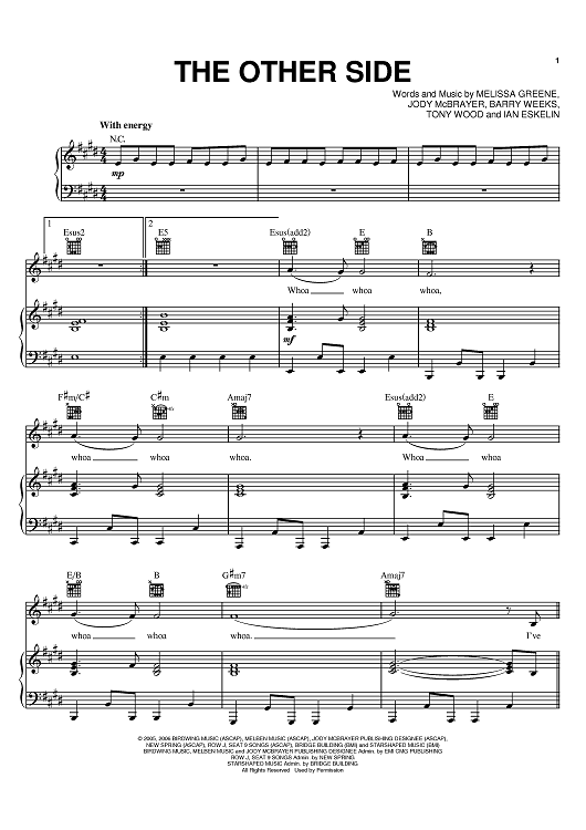 Digital Sheet Music for The Other Side by Jody McBrayer, Avalon, Ian Eskelin, Melissa Greene, Barry Weeks, Tony Wood scored for Piano/Vocal/Chords; id:389037