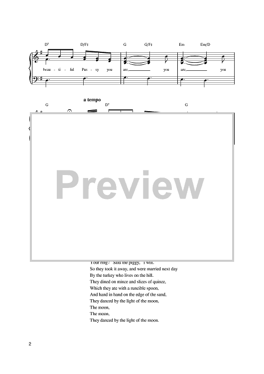Digital Sheet Music for The Owl And The Pussy Cat by scored for Easy Piano; id:387541
