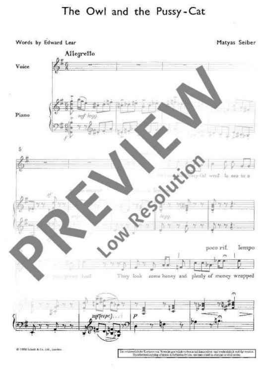 Digital Sheet Music for The Owl and the Pussy-Cat by Mátyás Seiber scored for Voice And Piano; id:474223