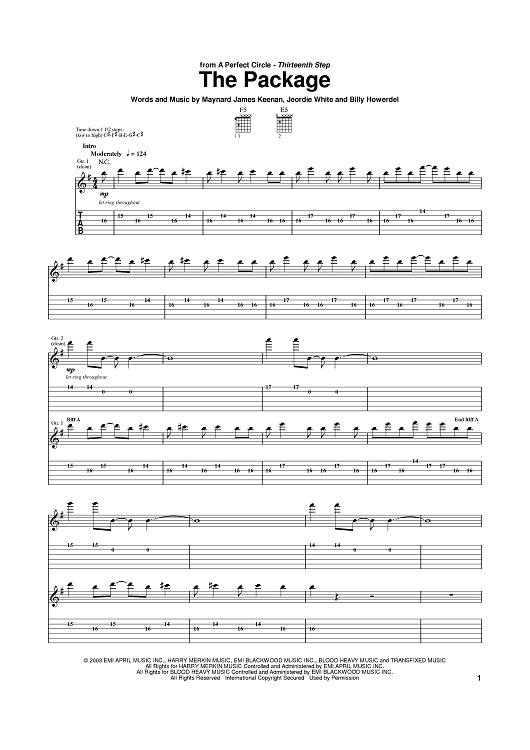 Digital Sheet Music for The Package by Maynard James Keenan, Billy Howerdel, A Perfect Circle, Jeordie White scored for Guitar Tab; id:380575
