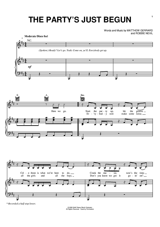 Digital Sheet Music for The Party's Just Begun by Matthew Gerrard, Robbie Nevil scored for Piano/Vocal/Chords; id:394565